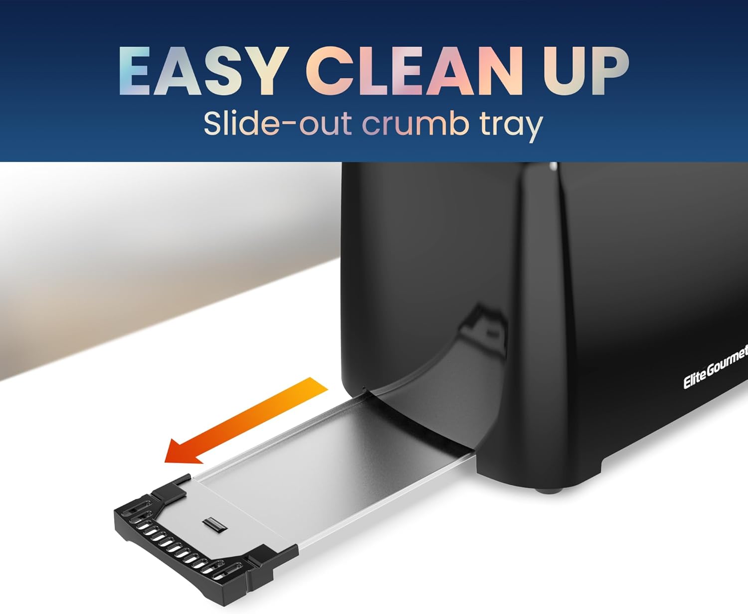 The Elite Gourmet ECT1027B Cool Touch Toaster is the perfect addition to any kitchen. With 6 temperature settings and extra wide 1.25" slots, this toaster can handle everything from bagels and waffles to specialty breads and puff pastry. Its cool touch exterior ensures safe handling, while the ETL certification guarantees quality and safety. This sleek black toaster is designed to toast 2 slices at a time, making it perfect for breakfast or snack time. Upgrade your toaster game with the Elite Gourmet ECT1027B Cool Touch Toaster.