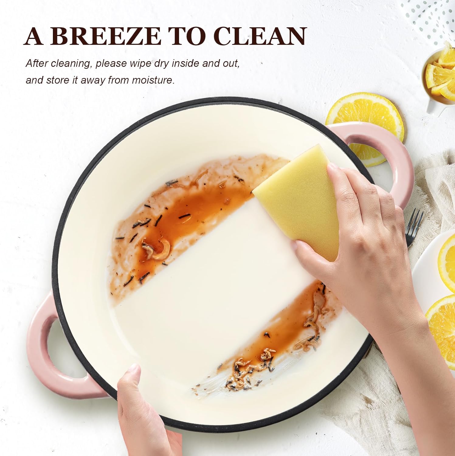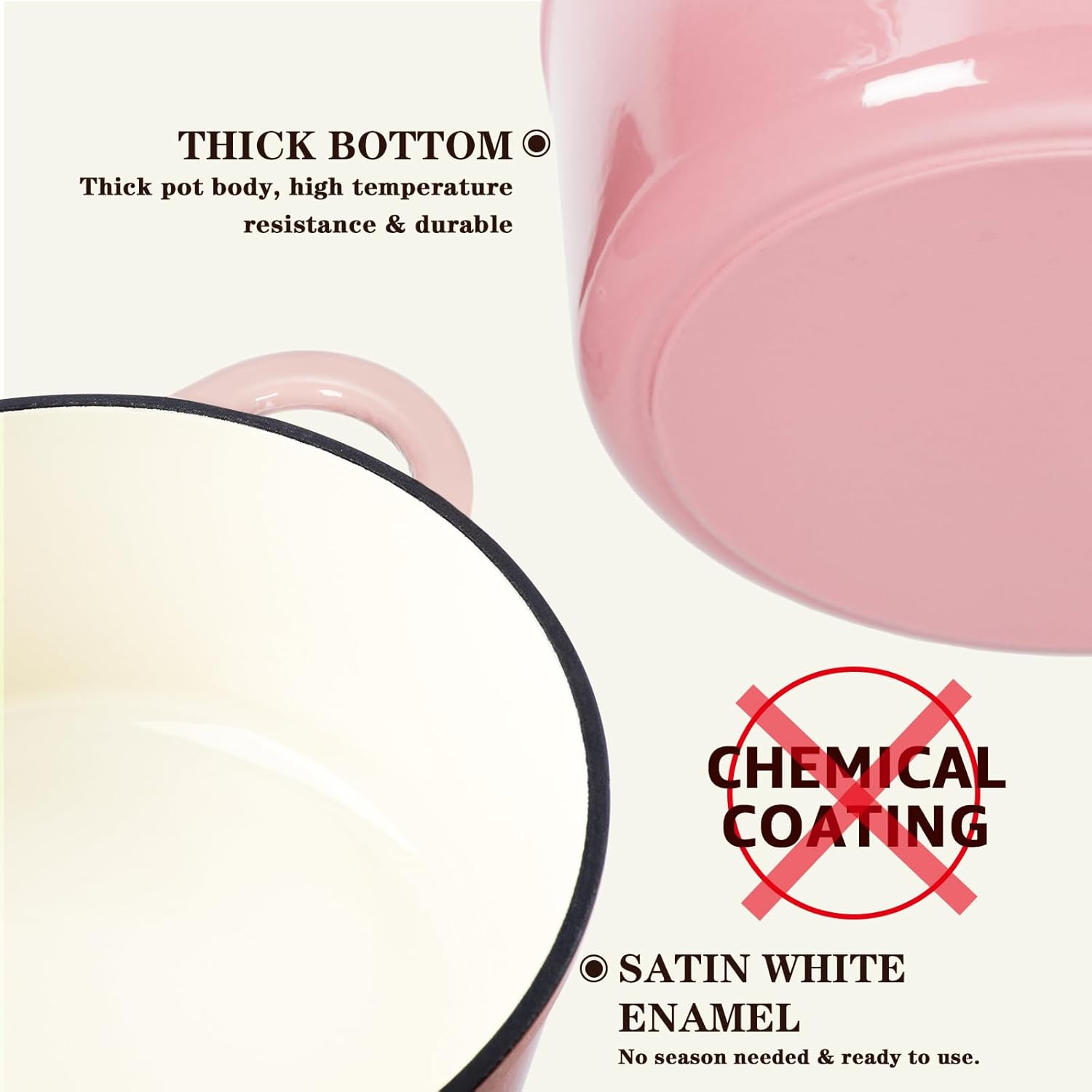 Made from heavy-duty cast iron, this dutch oven ensures even heat distribution and retention, resulting in perfectly cooked meals every time. The vibrant pink enamel coating not only adds a pop of color to your kitchen but also makes it easy to clean and maintain.